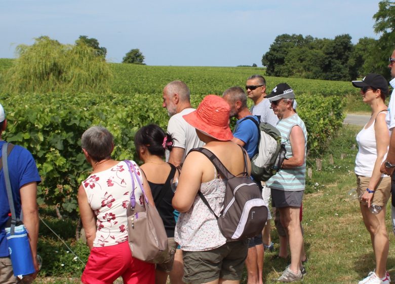 Après la balade, vous visitez les chais et dégustez les vins du Château Tour Castillon et jus de fruits pour les enfants.
