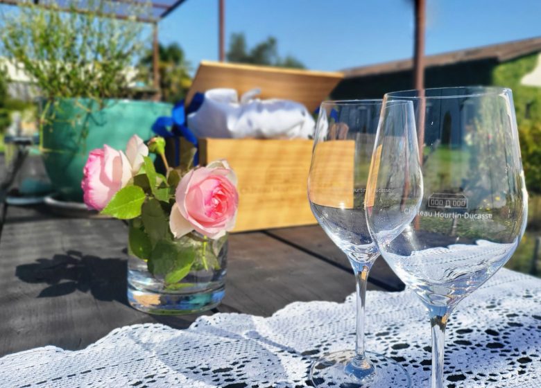 Après la visite de votre choix, attablés entre 2 rangs de vignes ou à L’Abri (si le temps le nécessite), profitez d’une jolie table avec serviettes en lin, nappe, verres et couverts... et d’un panier riche de produits locaux et bons. Cagette de la Ferme ou Cagette du Pêcheur, au choix ! Et si le pique-nique est trop gourmand, un ballotin « Pour Plus Tard » est à votre disposition.