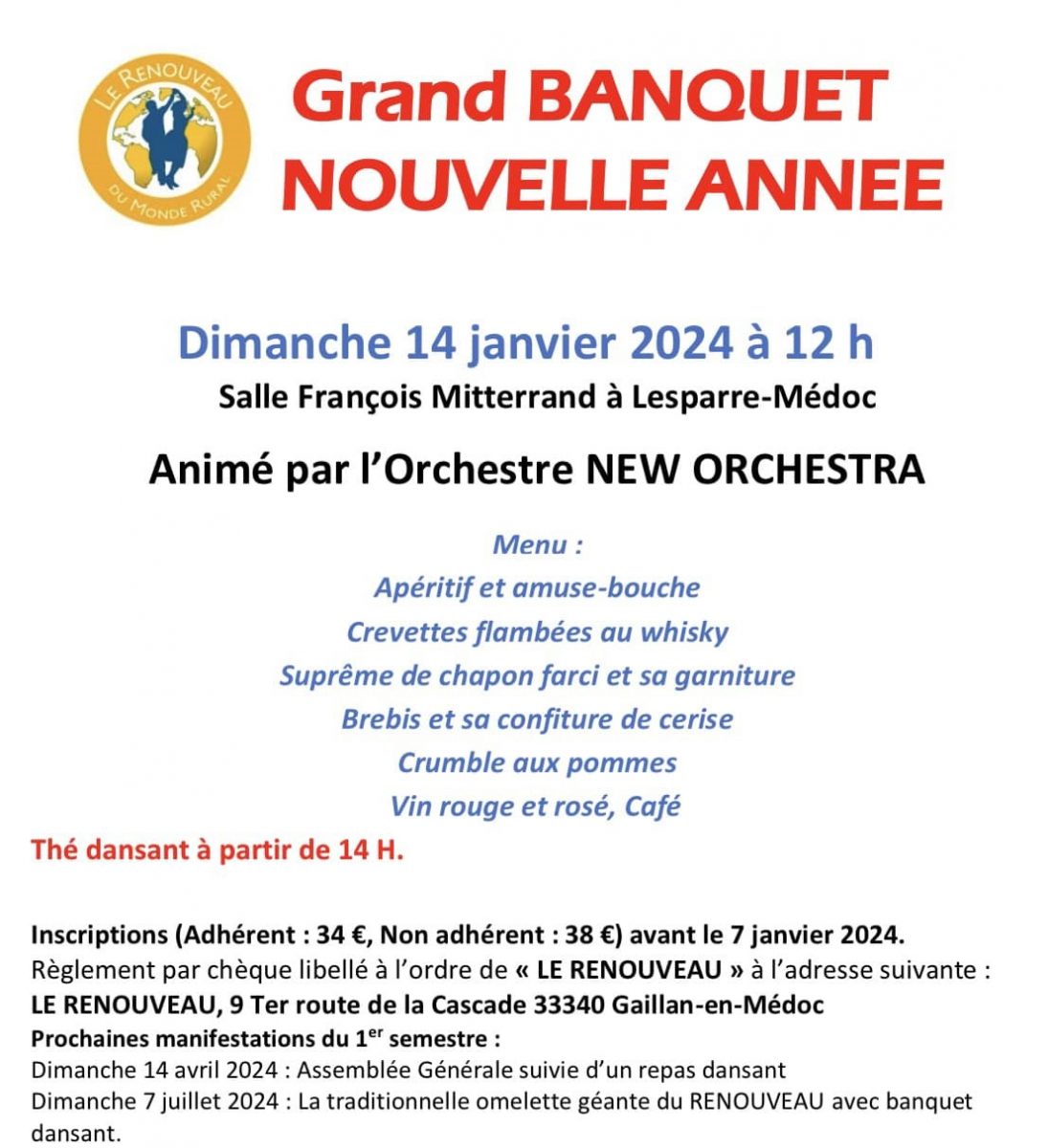 L'association le Renouveau vous convie à son grand banquet dansant du nouvel an