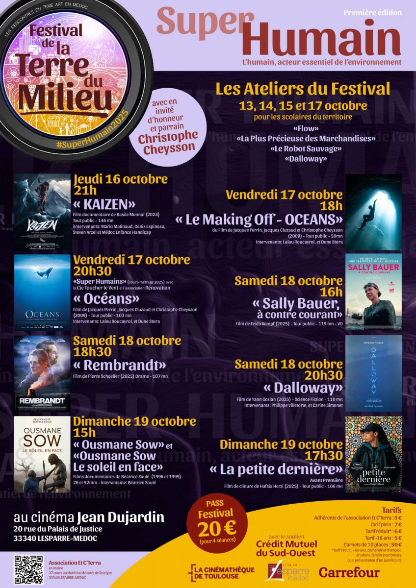 Le Festival de Cinéma "La Terre du milieu " est un événement annuel unique en Médoc, qui invite à réfléchir ensemble, par le prisme du cinéma, à notre manière de vivre sur cette planète commune.