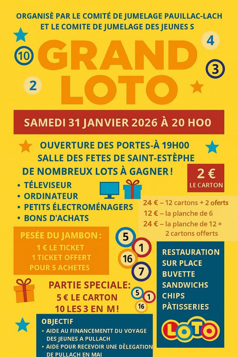 Loto organisé par le Comité de Jumelage Pauillac-Pullach et le Comité de jumelage des jeunes.