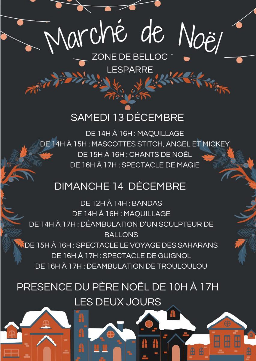 dimanche : bandas ; maquillage ; déambulation d’un sculpteur de ballons ; spectacle le Voyage des Saharans ; spectacle de Guignol ; déambulation de Trouloulou. A 14 h : spectacle avec un ventriloque et à 17 h le chanteur Sacha NEMETZ sera sur scène pour nous offrir ses plus belles chansons et clôturer le marché.