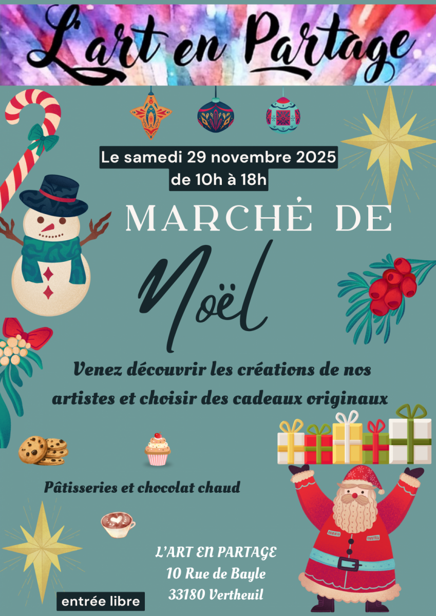 L'Art en partage fête Noël avec un marché d'artisanat médocain, pâtisseries et chocolat chaud.