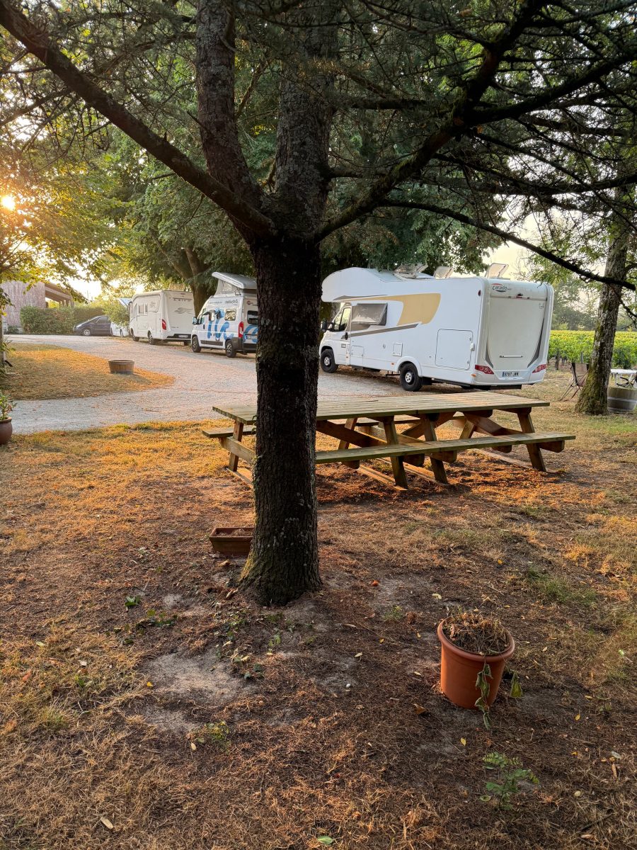 Possibilité d'accueillir des véhicule de plus de 7,5m. Point d'eau claire, Parc ombragé... Des tables de pique-niques sont mises à disposition.