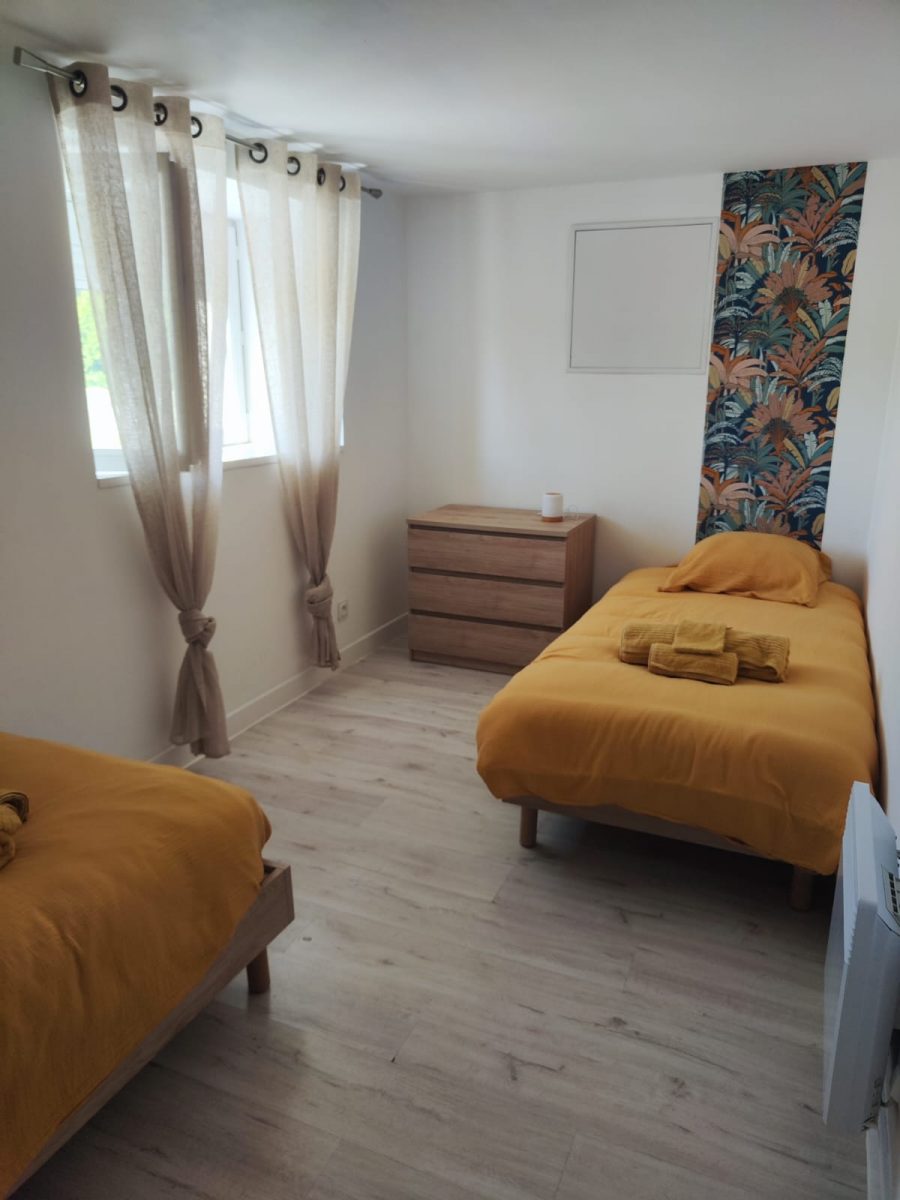 Il dispose de 2 chambres équipées de 1 lit en 140 et de 2 lits en 90. Pour un séjour avec votre bébé, vous disposez gratuitement, d'un lit, d'une chaise haute et d'une baignoire. La maison est équipée d'une salle d'eau et d'un wc indépendant. Le linge de maison est fourni.