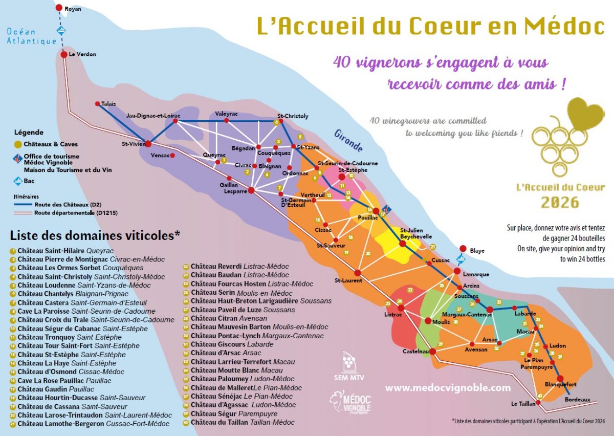 Par tirage au sort en septembre 2025, un visiteur gagnera 24 bouteilles de vins du Médoc.