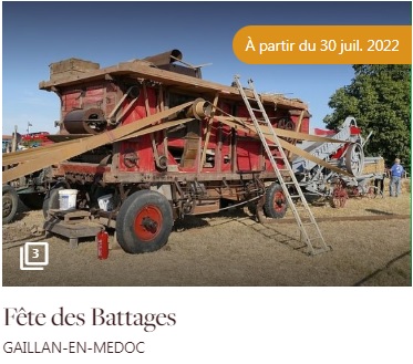 Zoom sur… Portes ouvertes des Crus ArtisansLes « Crus Artisans du Médoc » vous ouvrent leurs portes pour vous faire découvrir leurs exploitations viticoles ainsi que leurs vins, mais surtout leur état d’esprit, attaché à leur histoire et à leurs racines. En savoir plus Actualité : Une autre vision du vignoble En dehors des « visites et dégustations » traditionnelles de nombreux châteaux vous proposent de découvrir leur domaine, leur travail, leurs vinsd ’une façon plus originale comme par exemple :– Visite nature au Château Lafon-Rochet – Balade Champêtre et Viticole au Château Castera – Le soin des vignes au Château Hourtin Ducasse – Apér’O Carrelet au Château Tour Castillon – Découverte de l’agroforesterie au Château Haut-Bages Libéral – Dégust’en bout de Parcelle au Château Beauvillage Et plus encore Animations : les coups de cœurs de l’équipe! Télécharger l’agenda des 15 prochains jours au format PDF Billetterie en ligne SunSkaVertheuil – Domaine de Nodris After SunskaVertheuil – Domaine de Nodris Voûtes & VoixVertheuil – Abbaye Cabaret St-SabastienCouquèques TOUT L’AGENDA MEDOC VIGNOBLE Vous organisez une manifestation, un événement, une soirée, une kermesse, un loto… Ca se passera dans la CDC Médoc-Cœur-De-Presqu’île, alors pensez à informer l’office de tourisme, le plus tôt possible, la parution dans l’agenda de notre site www.medocvignoble.com est GRATUITE. |