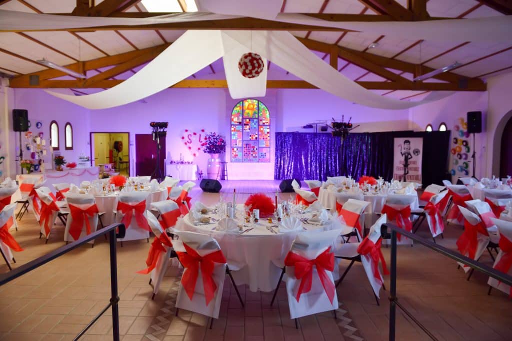 Salle de réception pour 140 personnes assises avec cuisine traiteur toute équipée.