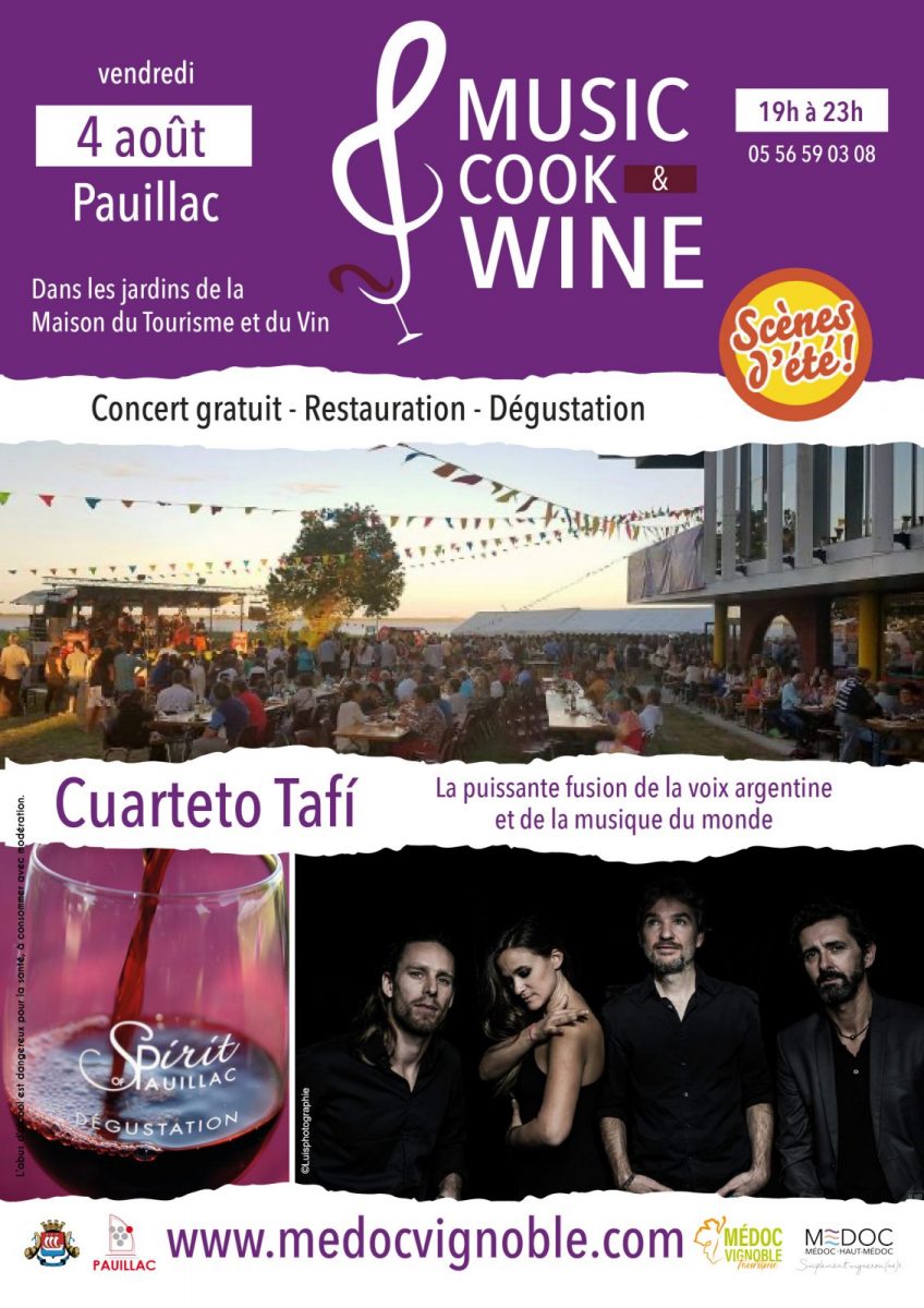 A Pauillac, ce soir, c’est Music & Cook & Wine dans les jardins de la Maison du Vin dès 19h. Concert gratuit labellisé Scène d’été, présence de viticuleurs médocains et producteurs locaux…