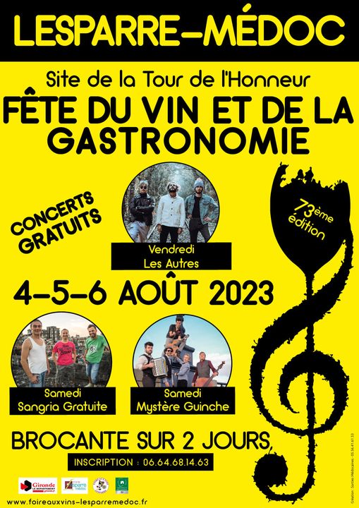 A Lesparre, sur le site de la Tour de l’Honneur, fête du vin et de la gastronomie durant 3 jours à partir d’aujourd’hui ! Concerts les soirs, brocante sur les 2 jours… Let’s go !